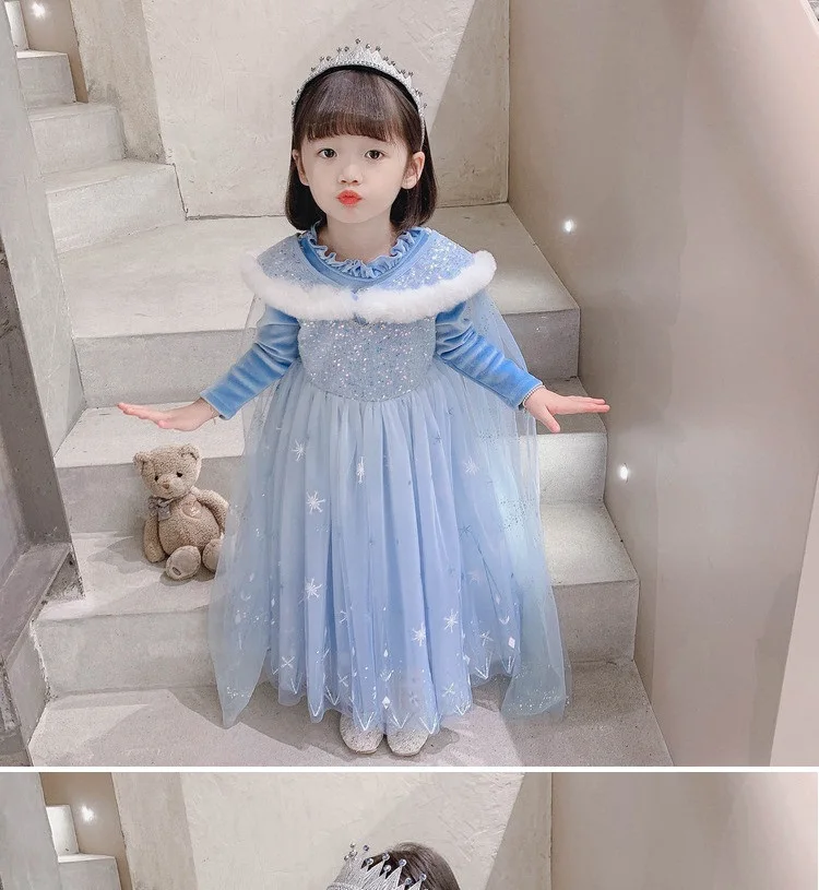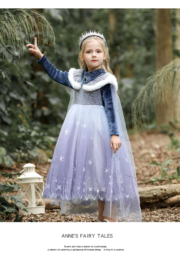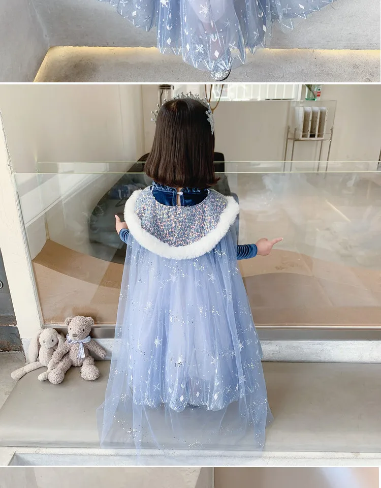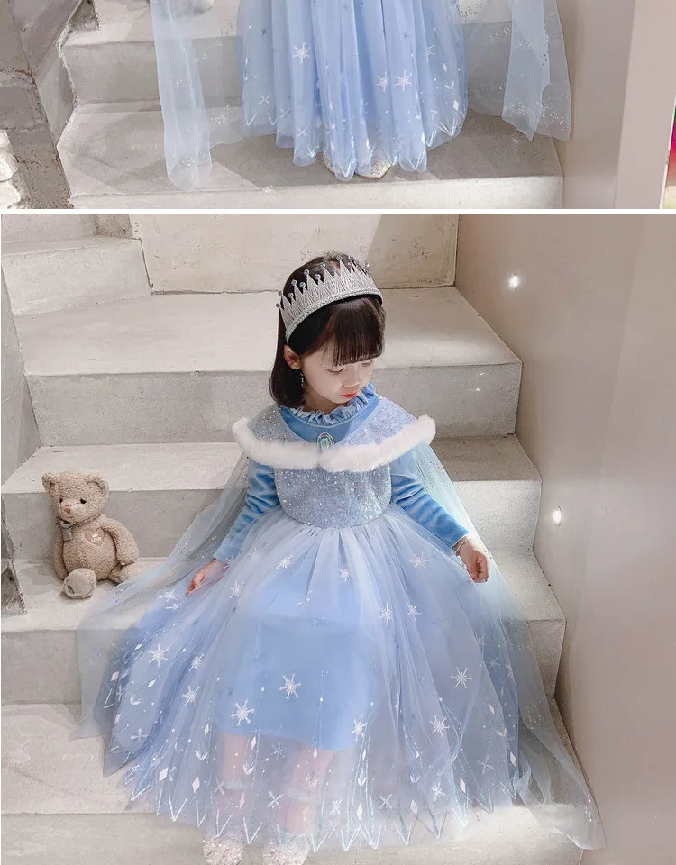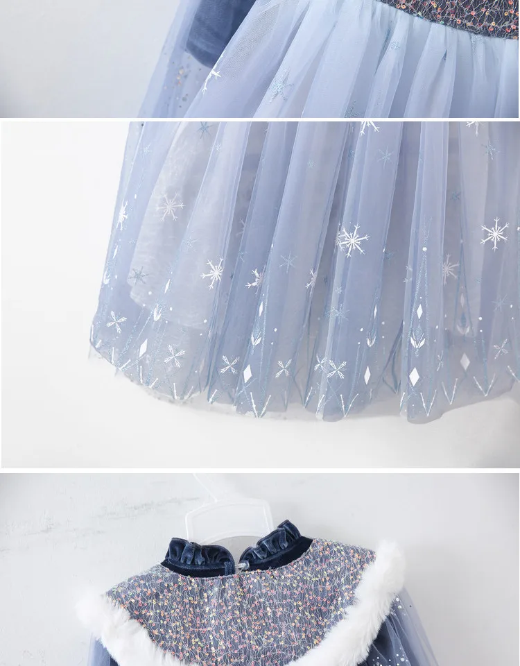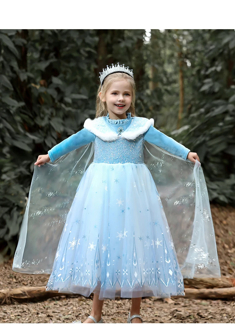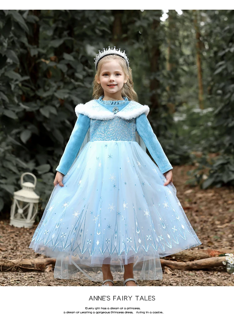 Disponível em lindas variações de cor, como conjunto azul escuro, conjunto de veludo azul escuro, conjunto azul céu e conjunto de veludo azul celeste, essa fantasia permite escolher o tom que mais combina com a personalidade da criança. As cores vibrantes e elegantes remetem diretamente ao gelo, à neve e ao encanto do inverno, despertando brilho nos olhos e muita imaginação 💙❄️.