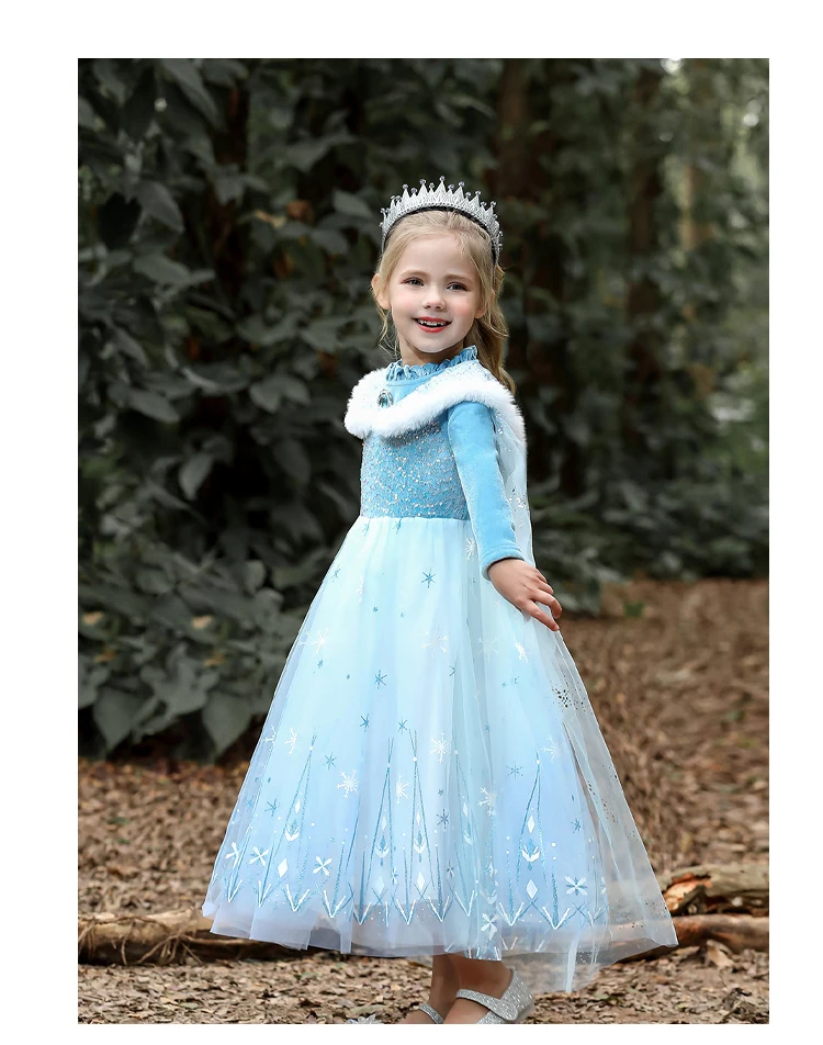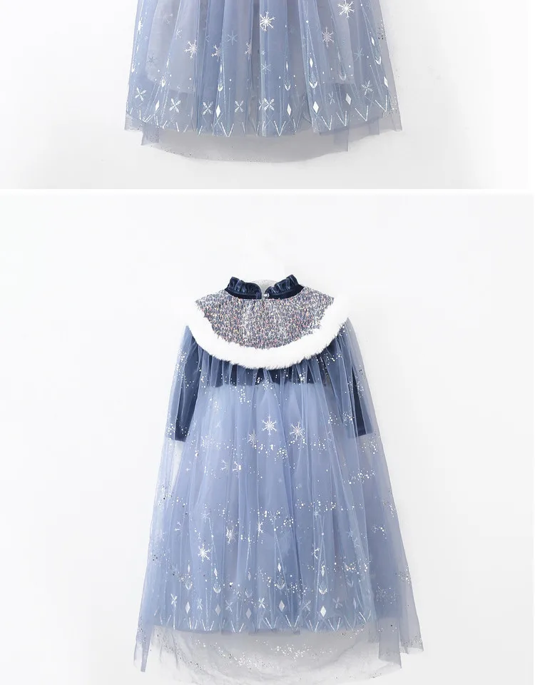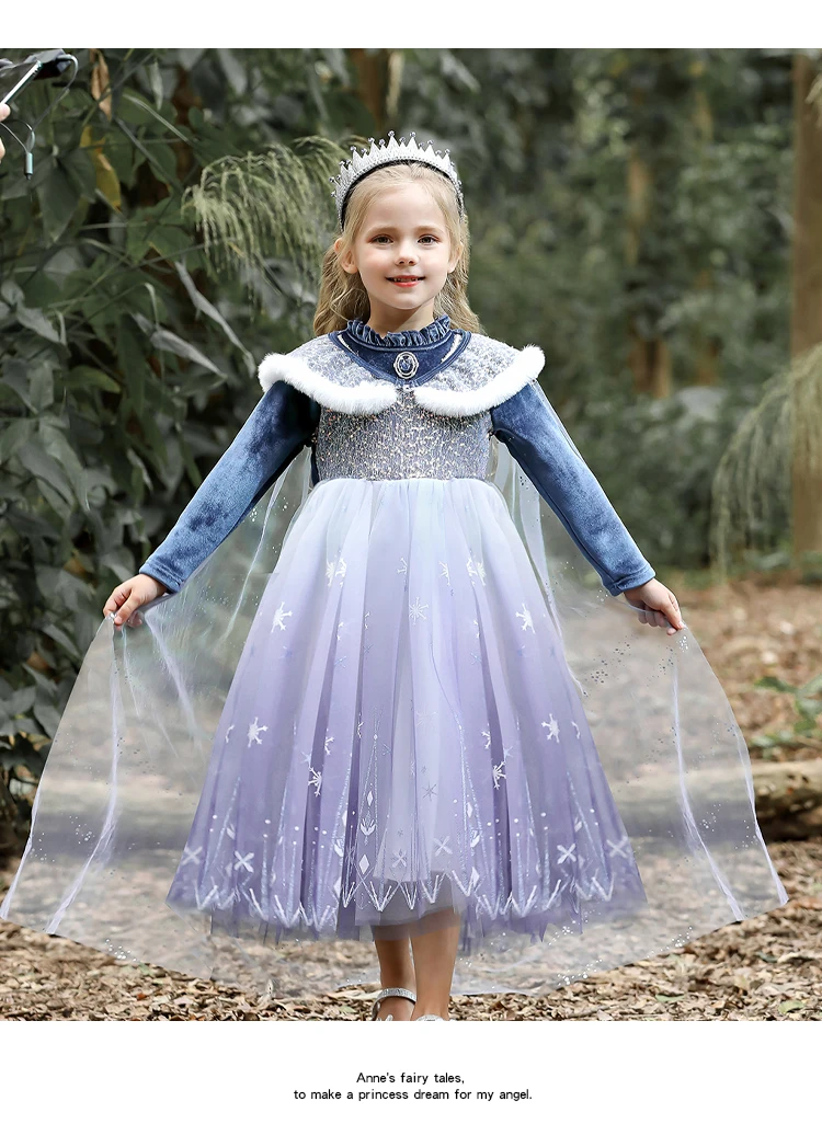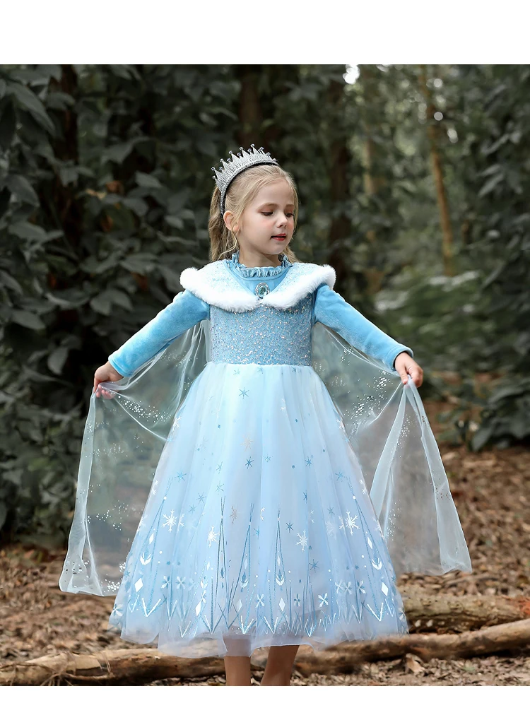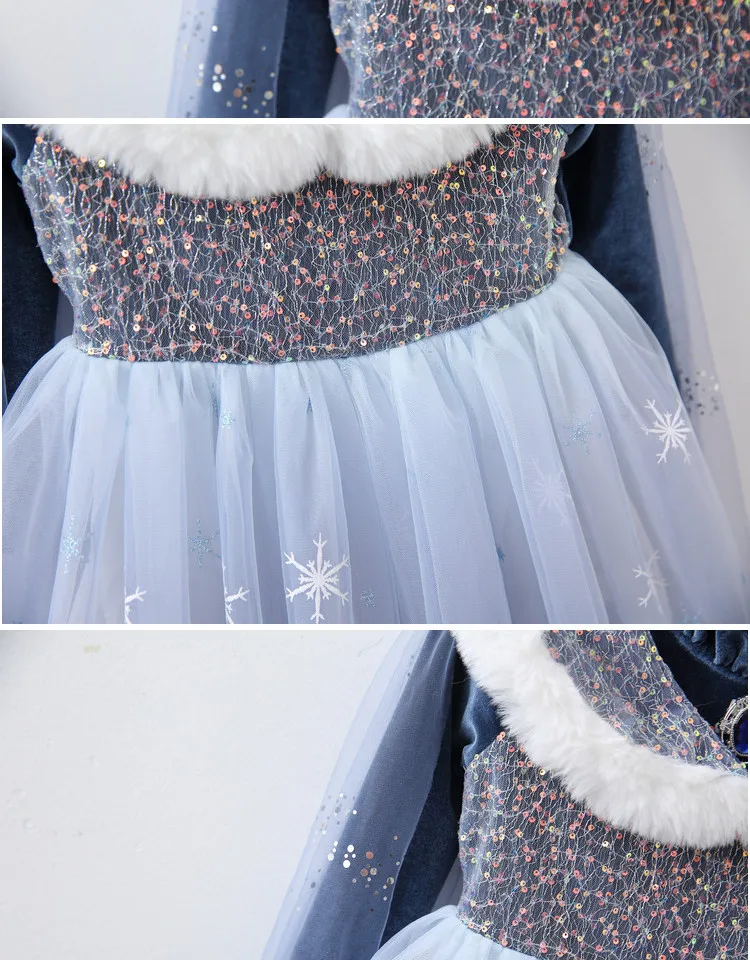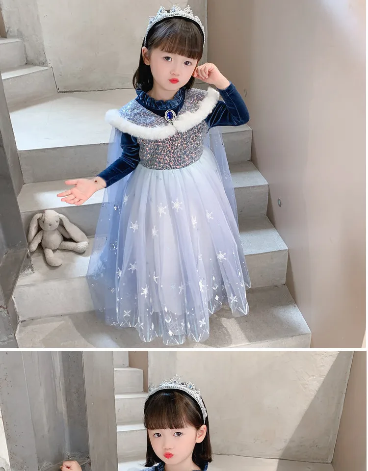 Disponível em lindas variações de cor, como conjunto azul escuro, conjunto de veludo azul escuro, conjunto azul céu e conjunto de veludo azul celeste, essa fantasia permite escolher o tom que mais combina com a personalidade da criança. As cores vibrantes e elegantes remetem diretamente ao gelo, à neve e ao encanto do inverno, despertando brilho nos olhos e muita imaginação 💙❄️.