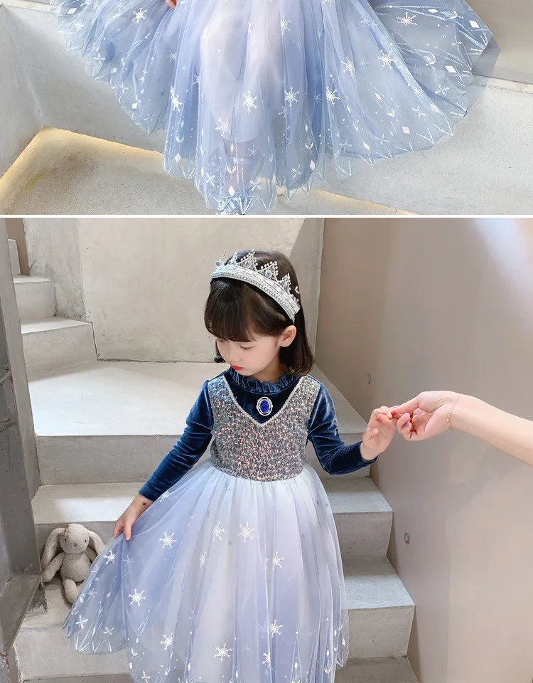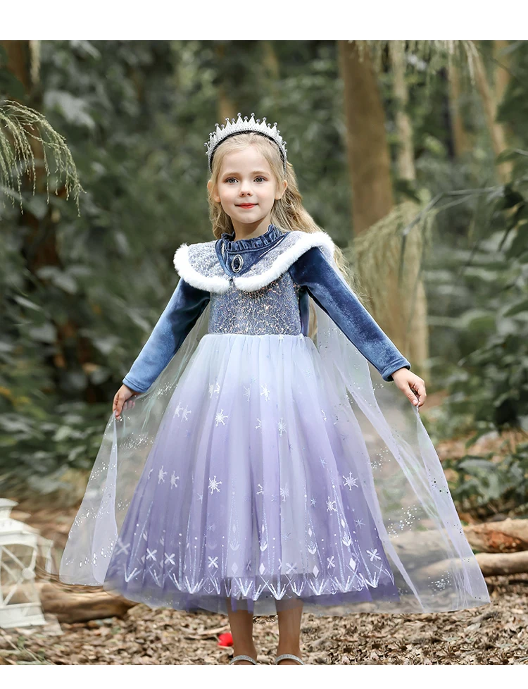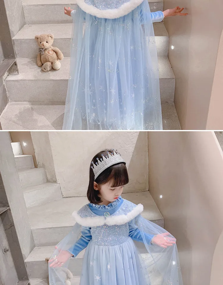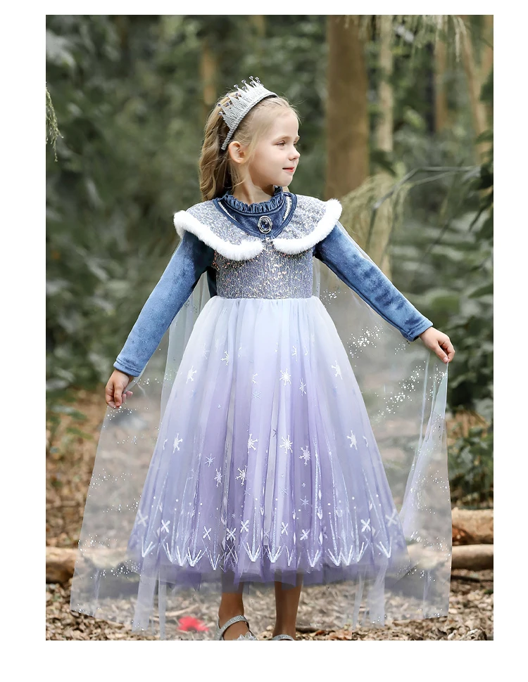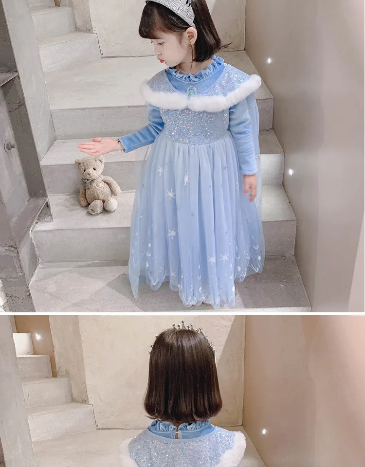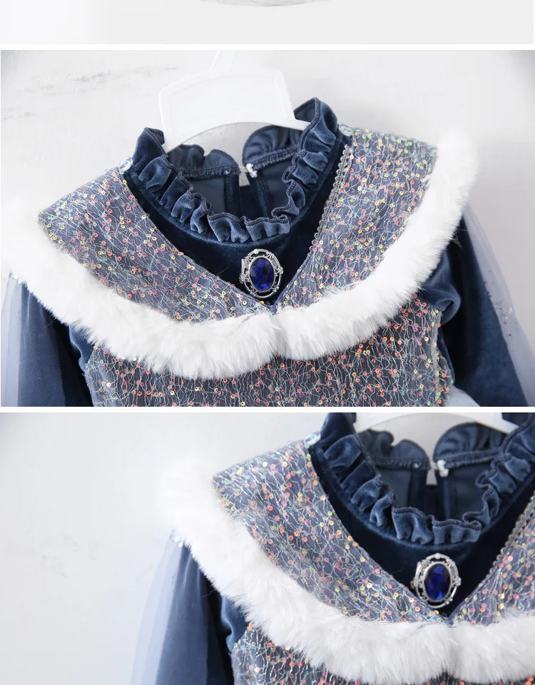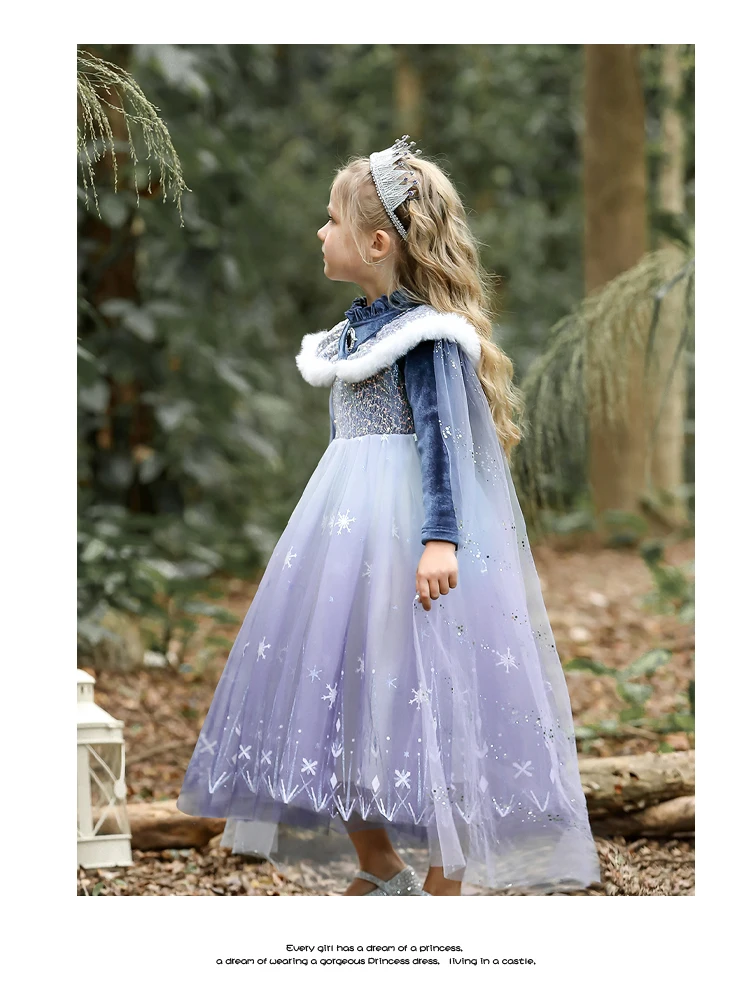 Disponível em lindas variações de cor, como conjunto azul escuro, conjunto de veludo azul escuro, conjunto azul céu e conjunto de veludo azul celeste, essa fantasia permite escolher o tom que mais combina com a personalidade da criança. As cores vibrantes e elegantes remetem diretamente ao gelo, à neve e ao encanto do inverno, despertando brilho nos olhos e muita imaginação 💙❄️.