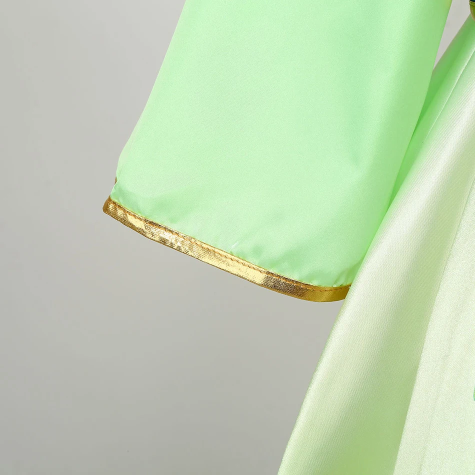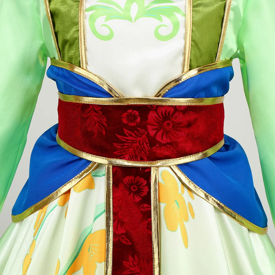 A fantasia apresenta o modelo Hua Mulan Dress A, com acabamento delicado, cores vibrantes e detalhes que remetem diretamente ao visual clássico da personagem. Cada elemento foi pensado para trazer autenticidade, elegância e conforto, permitindo que a criança se sinta dentro do filme, vivendo sua própria jornada heroica. ✨ O design é fiel ao tema oriental, com cortes harmoniosos e um caimento que valoriza os movimentos, perfeito para brincar, dançar e se divertir livremente.