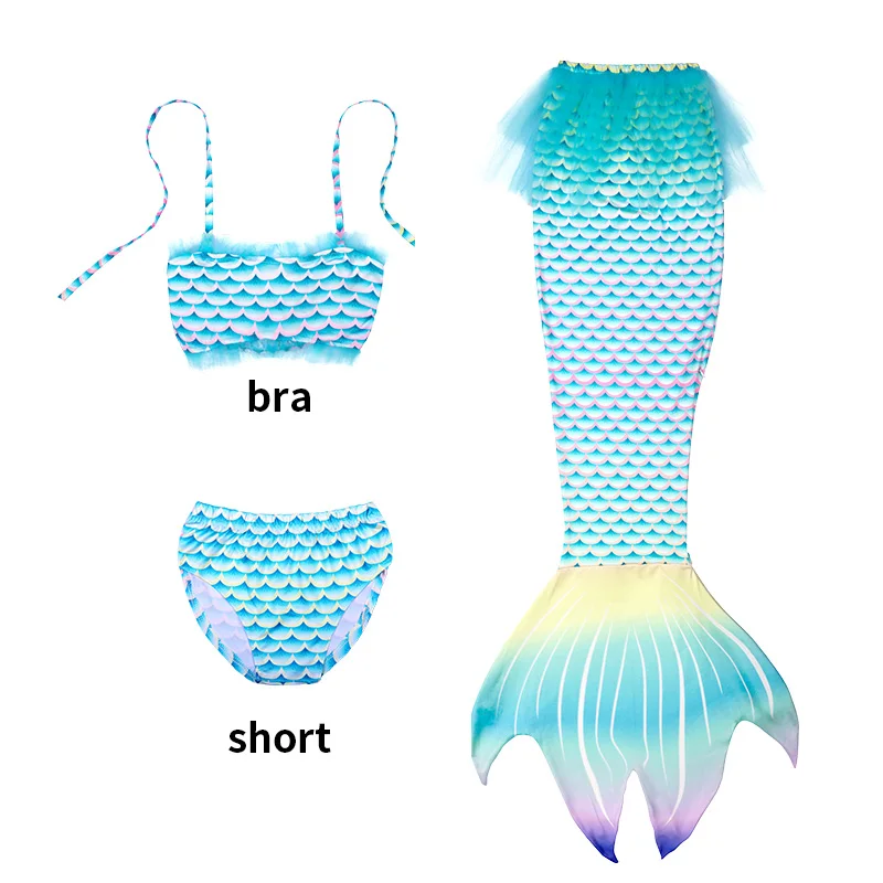 Conteúdo do pacote 3 peças: top + calcinha + cauda de sereia