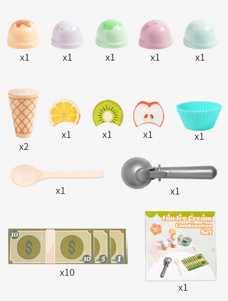 Este brinquedo educativo é perfeito para brincadeiras de faz de conta, ajudando no desenvolvimento social e emocional. Ao simular uma sorveteria, a criança aprende sobre trocas, escolhas, organização e até noções básicas de matemática, como contagem e comparação de tamanhos 🍨🧩. É uma excelente opção para brincar sozinho, com amigos ou em família, fortalecendo vínculos e estimulando a comunicação.