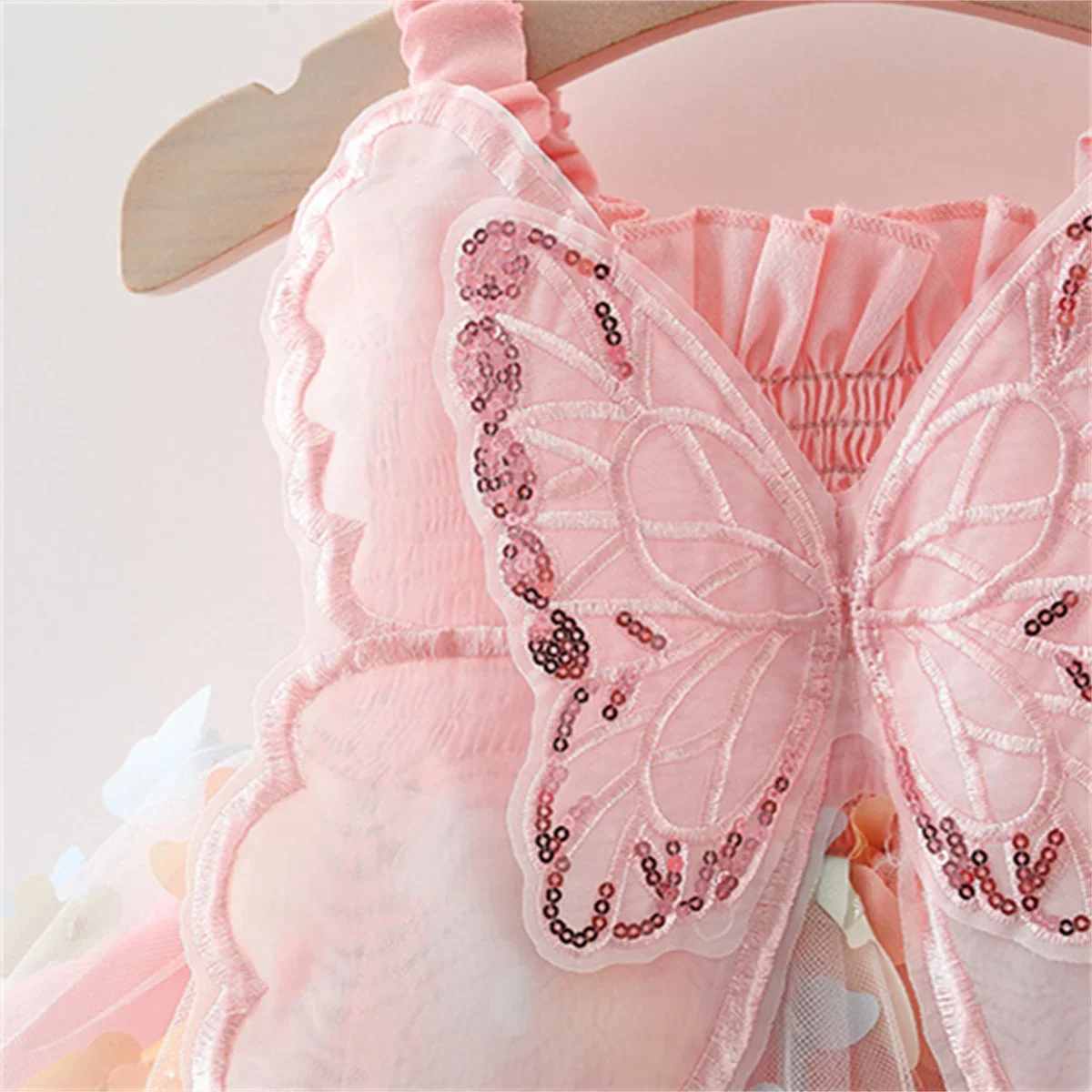 Verão Meninas Princesa Festa Aniversário Vestido De Volta Arco Asas Fada Strap Bordado Borboleta Malha Vestido